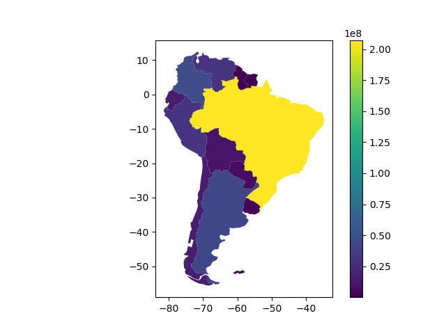 GeoDataFrameis just like aDataFrameso you can filter down to just the rows for countries in South America (where the'CONTINENT'column has value'South America').The data can be found at