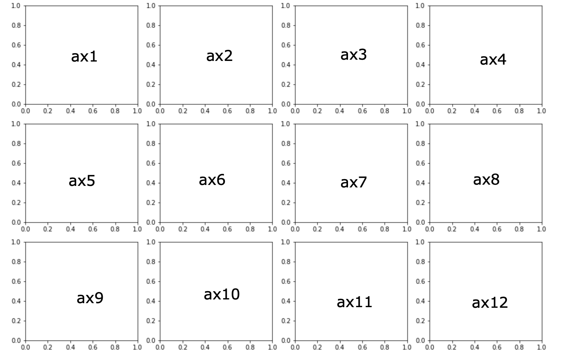 For example, if we made a subplots using the following line, it would produce the figure below.