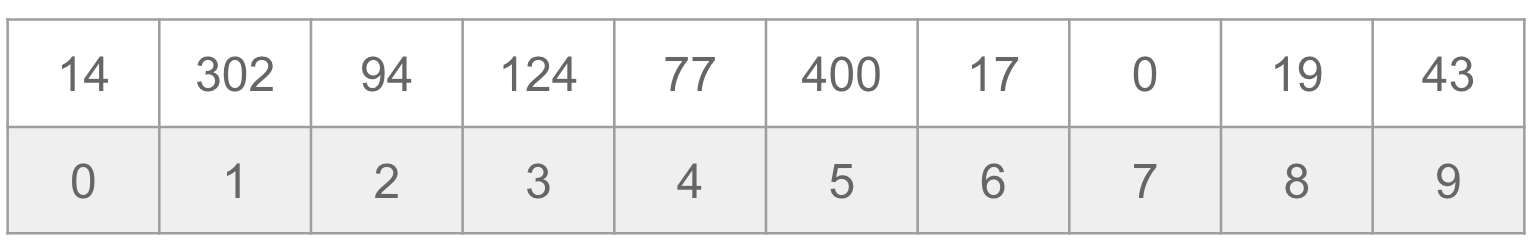 So a clever idea is to try to save space by only trying to approximate the count. Instead of asking that our count is exactly the number of times a query has appeared, we only ask that the count is close to the true count. We can accomplish this by using a hash table that doesn’t use separate chaining, and instead just stores a count at each index like in the picture below.